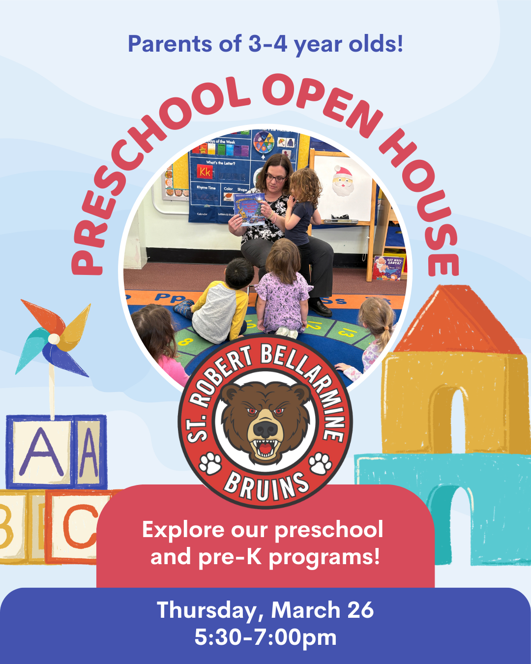 Looking for preschool, preK or K-8 for your child? Consider St. Robert Bellarmine School. Click here to book a tour or touch base with our admissions team.
